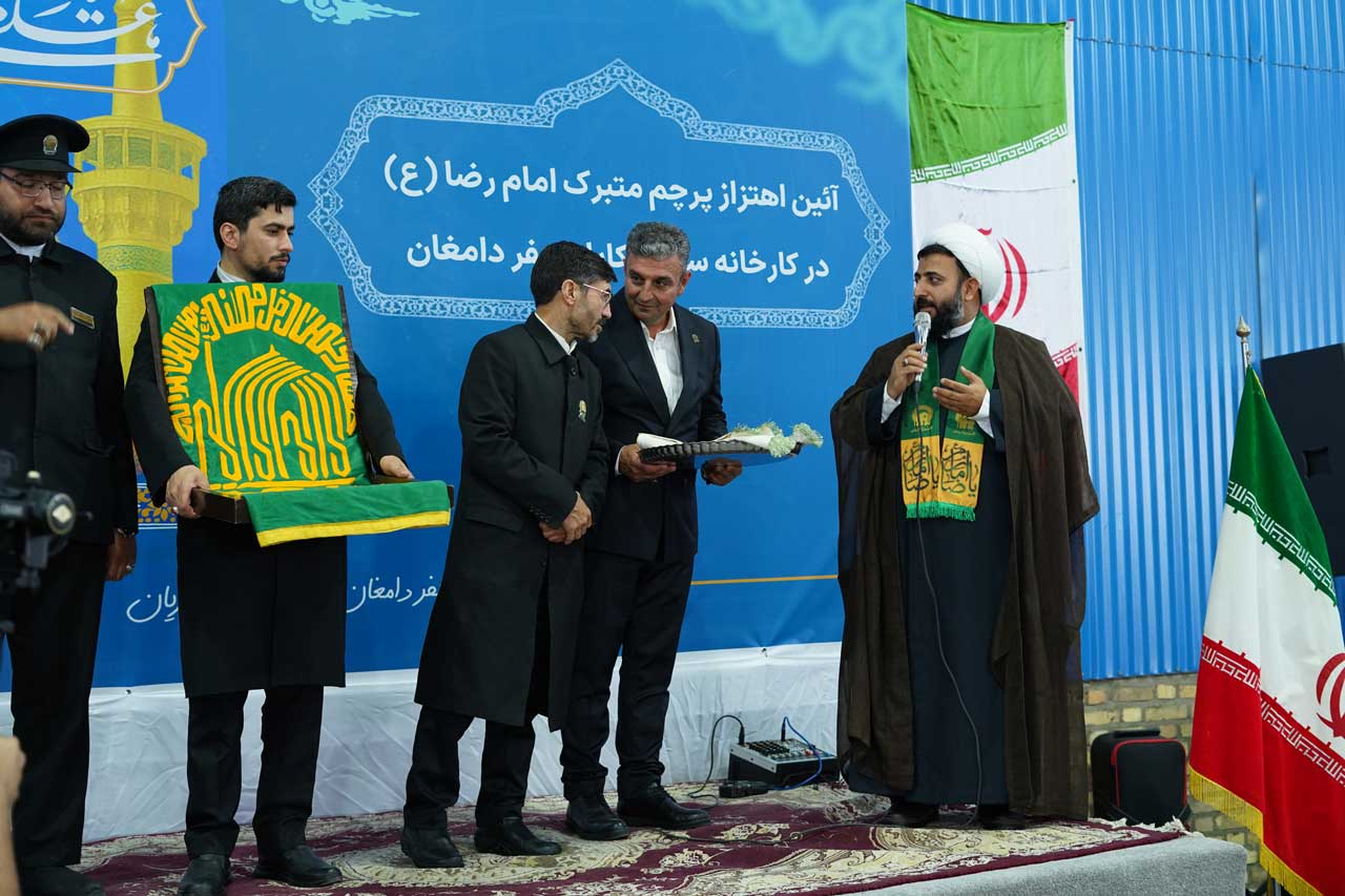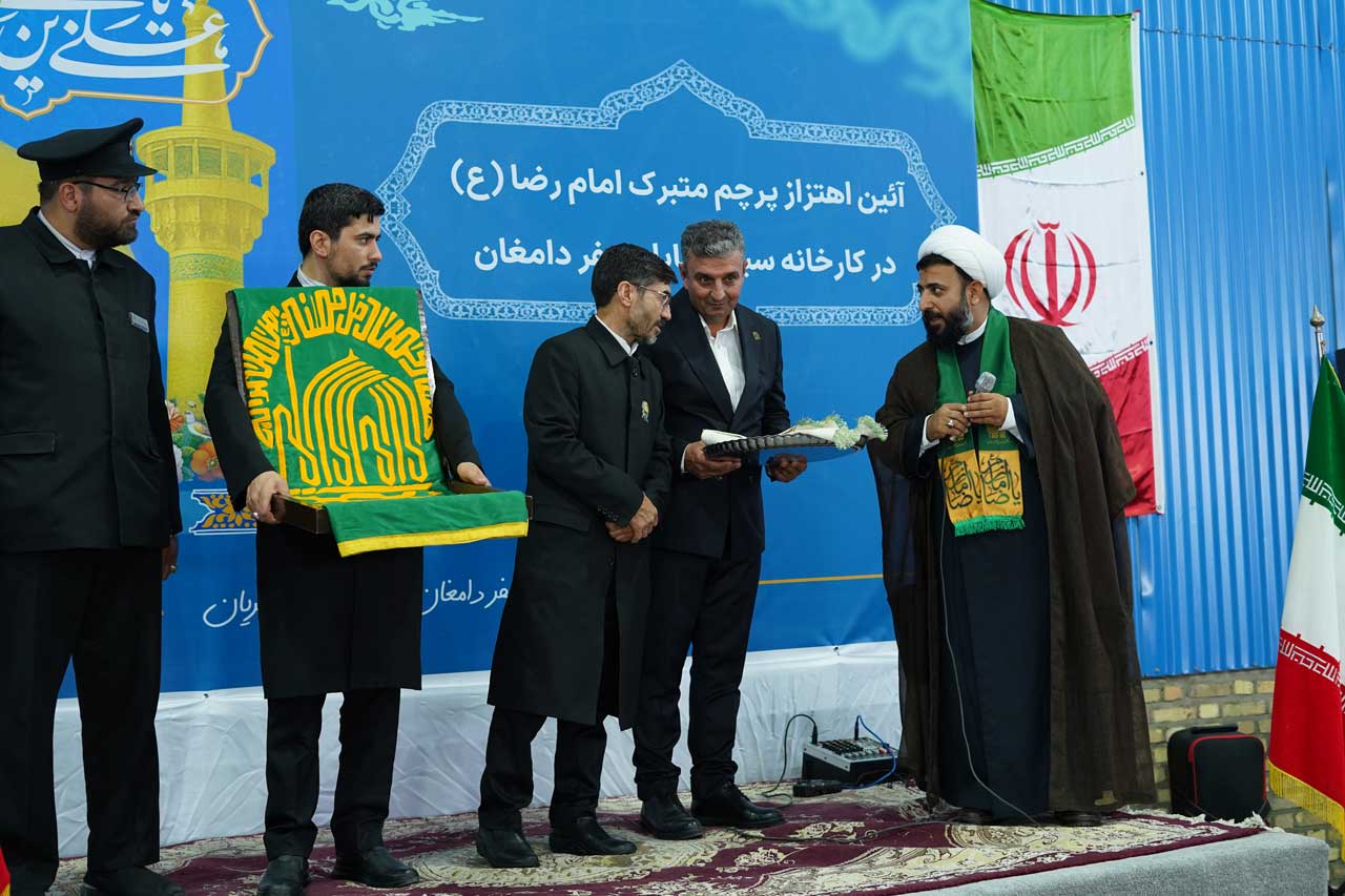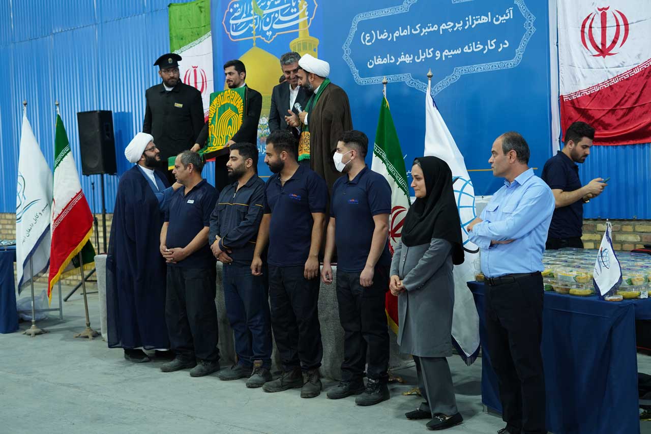 عنوان رویداد: مراسم آئین تبرک پرچم مقدس بارگاه امام رضا (ع) در کارخانه سیم و کابل بهفر دامغان